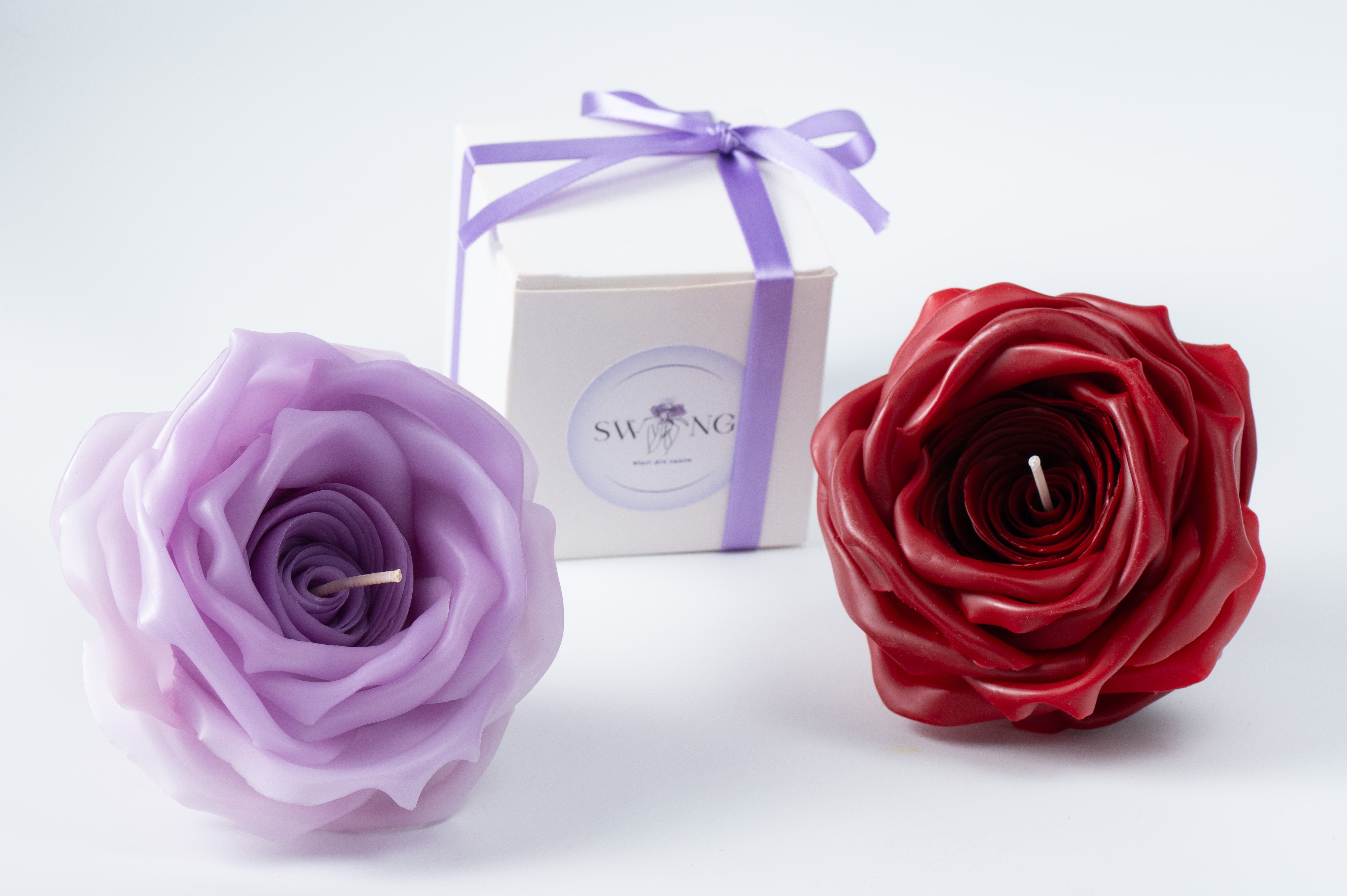 Lumânare realizată manual, decorată cu trandafiri din ceară, creată pentru a aduce o notă de romantism, eleganță și căldură în orice spațiu.